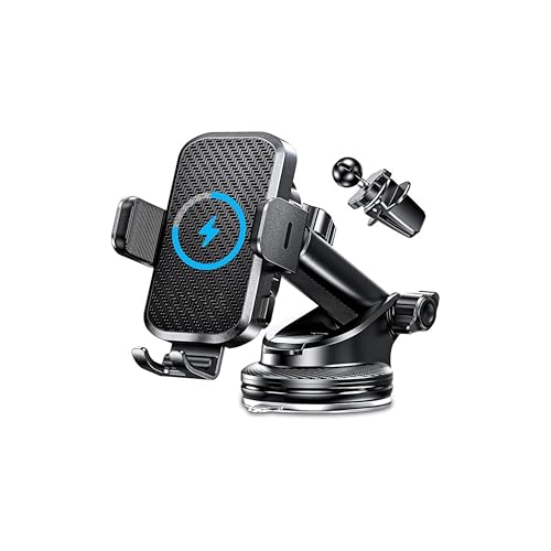 Generic - حامل شاحن سيارة لاسلكي، حامل موبايل يثبت على التابلوه وفتحة التهوية مع قاعدة شفط، اسود