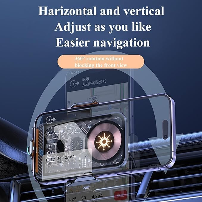 - [خيارات تركيب متعددة ومرنة]: مصمم ليتوافق مع المحول أو فتحة داب، ويأتي مع ملحقات لتركيب قوي ومستقر في معظم أنواع السيارات. يمنحك حرية اختيار الوضع المناسب لرؤية مريحة أثناء القيادة، مما يضمن ثبات الهاتف.
