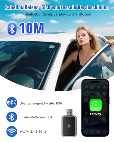 AUZOSL - محول سيارة كاربلاي واندرويد لاسلكي للسيارة - صندوق سيارة ابل كاربلاي واندرويد، بخاصية التوصيل والتشغيل، يحول كاربلاي وأندرويد السلكي إلى لاسلكي، ويدعم التحديث عبر او تي ايه