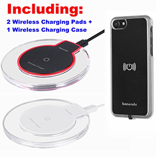 hanende - طقم شاحن لاسلكي لهاتف آيفون 7، هانند [صديق للنوم] وسادة شحن لاسلكية تشى وحافظة استقبال لاسلكية لآيفون 7 (2 شواحن لاسلكية + 1 حافظة شحن لاسلكية) (أسود)، من هاندي
