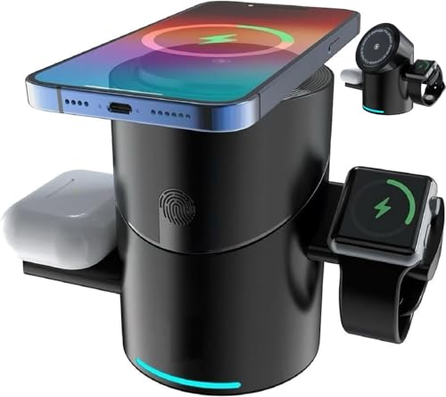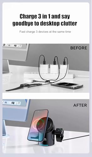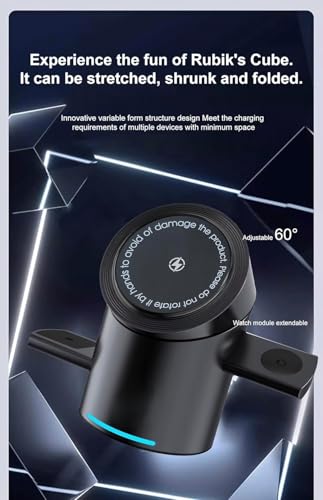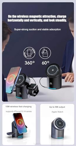 Generic - قاعدة شحن لاسلكية مغناطيسية متوافقة مع اجهزة ابل، شاحن لاسلكي قابل للطي 3 في 1 مع دوران تلقائي USB | تصميم منبثق | دوران 180 درجة باللمس 15 واط حامل شحن سريع للساعة