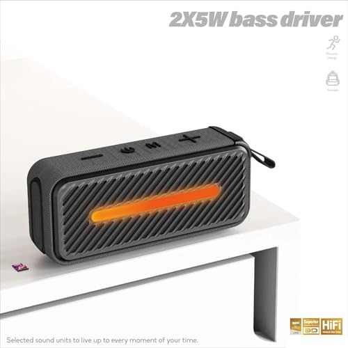 Generic - مكبر صوت بلوتوث محمول مع اضاءة محيطية ملونة، طاقة خرج 10 واط، بطارية 1800mAh، دعم بطاقة تي اف، مدخل AUX، مكالمات بدون استخدام اليدين، جودة صوت هاي فاي، صوت نقي، جهير هافي، اسود