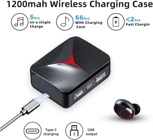- بطارية قوية بسعة 1200mAh: توفر علبة الشحن اللاسلكية وقت تشغيل يصل إلى 66 ساعة مع إعادة الشحن، و5 ساعات للسماعات على شحنة واحدة، مع شحن سريع أقل من ساعتين