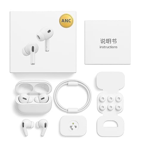 Generic - سماعة أذن لاسلكية برو 2 (الجيل الثاني) تدعم تقنية البلوتوث 5.3 مع خاصية إلغاء الضوضاء ومزودة بميكروفون مزدوج وبمدة تشغيل بطارية طويل ومتوافقة مع جميع الأجهزة، لون أبيض