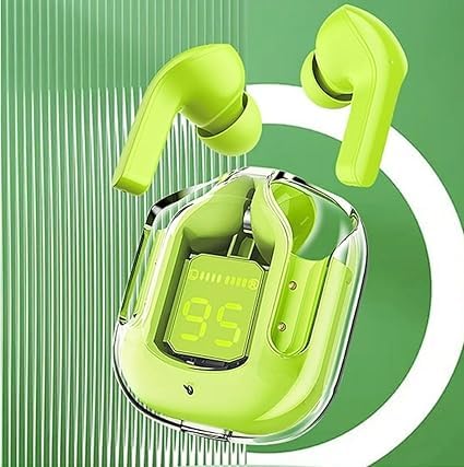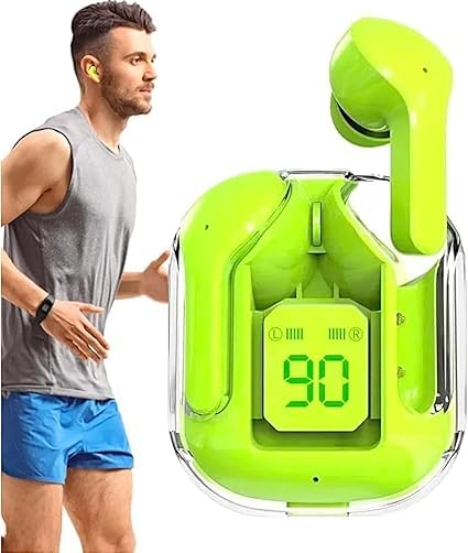 Generic - سماعات أذن رياضية لاسلكية بشاشة رقمية، لون أخضر نيون، تصميم مقاوم للعرق A-17-19-31