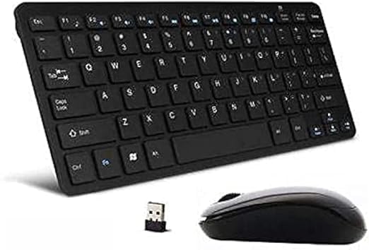 Generic - مجموعة كيبورد وماوس لاسلكيين، تصميم صغير ورفيع، اسود، مستقبل USB 2.4GHz، للكمبيوتر الشخصي واللاب توب