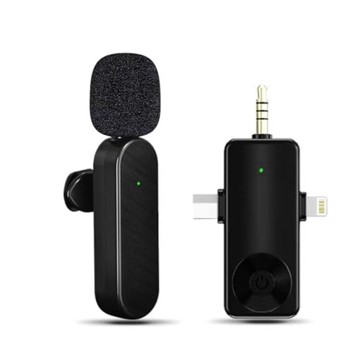 Gicorino - ميكروفونات لافالير لاسلكية، مستقبل عالمي 3 في 1 لاجهزة اندرويد وايفون وايباد واللابتوب والكاميرا، USB-C، ميكروفون صغير لاسلكي لتسجيل الفيديو ومدونات الفيديو ويوتيوب وتيك توك