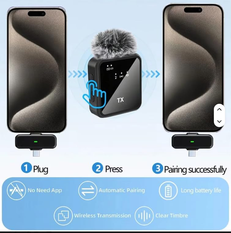 - حالة بديهية: احصل على تسجيل سلس مع ميكروفون لافالير اللاسلكي 3 في 1 للتوصيل والتشغيل، متوافق مع مجموعة واسعة من الأجهزة بما في ذلك USB-C ولايتنينغ ومقبس 3.5 ملم. تعرض شاشة LED حالة الجهاز في لمح البصر، مما يجعل الإعداد بديهيًا