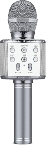 Generic - ميكروفون كاريوكي من كيدز زون باللون الفضي، يدعم اتصال بلوتوث لاسلكي مع عمر بطارية طويل وصوت نقي وواضح، متوافق مع الهواتف الذكية