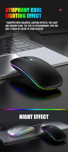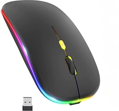 Generic - ماوس لاسلكي بإضاءة ليد 2.4 جيجا هيرتز ومنفذ يو إس بي 3 نقط لكل بوصة قابلة للتعديل مناسب لأجهزة الكمبيوتر وسطح المكتب مع عجلة تمرير سريعة وتحميل سريع وسهل نقر بدون ضجيج وتصميم إضاءة ليد.