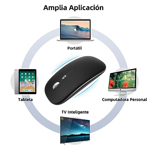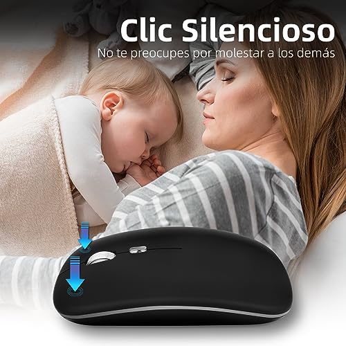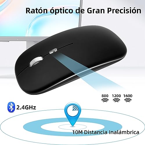 Pantio - ماوس لاسلكي بلوتوث قابل لاعادة الشحن 2.4G بوضع مزدوج، ماوس بصري مريح صامت مع مستقبل USB، 3 DPI (1000/1200/1600) قابل للتعديل، مثالي للابتوب والكمبيوتر وماك (اسود)