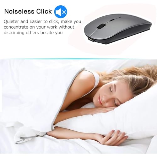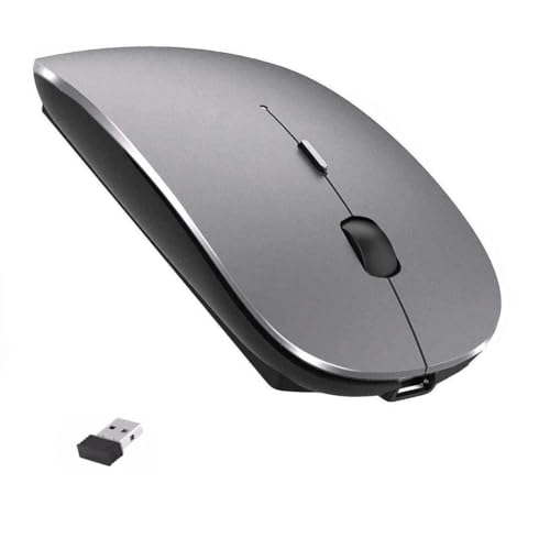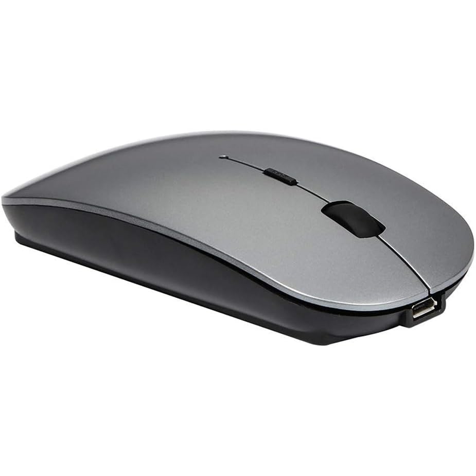 Generic - ماوس لاسلكي قابل لإعادة الشحن بتصميم محمول وصامت مزود بضوء ليد لأجهزة الكمبيوتر واللاب توب، رمادي