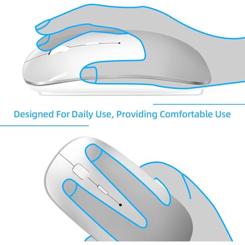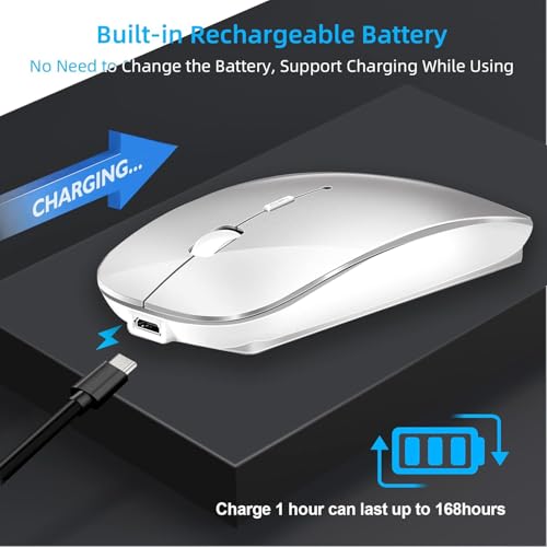 - 【ماوس لاسلكي قابل لإعادة الشحن】: بطارية مدمجة قابلة لإعادة الشحن، لذا لا حاجة لتغيير البطارية، فيمكنك شحنها بسهولة باستخدام كابل USB المرفق. شحن لمدة ساعتين، لاستخدام لمدة 7-15 يومًا. تصميم خاص بدون ضوضاء للأزرار اليمنى واليسرى، نقرة بدون ضوضاء، لا داعي للقلق بشأن إزعاج الآخرين بجانبك، مما يتيح لك التركيز على العمل.