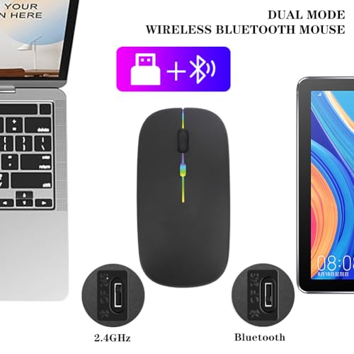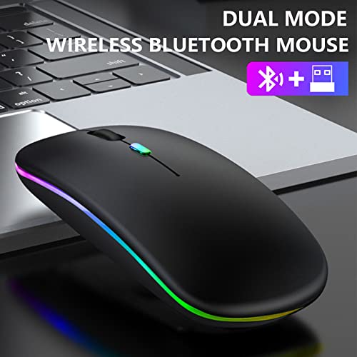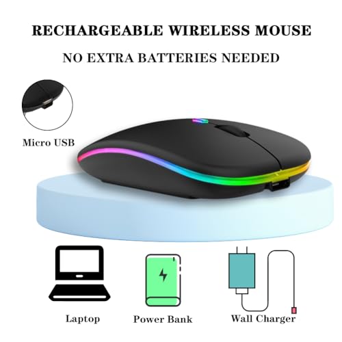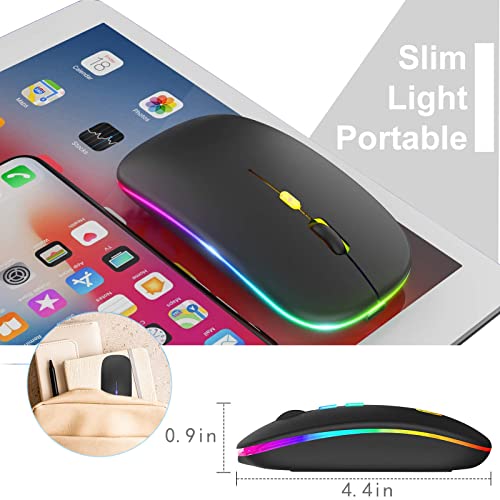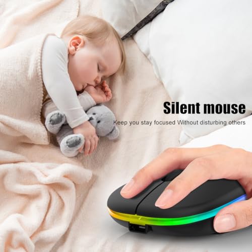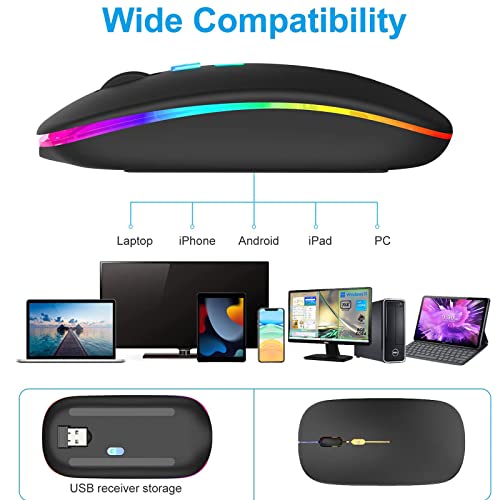 Generic - ماوس لاسلكي قابل لإعادة الشحن بإضاءة خلفية 7 ألوان مع مستقبل USB بلوتوث 5.0 للابتوب والكمبيوتر الشخصي وماك بوك والنوت والتابلت اسود