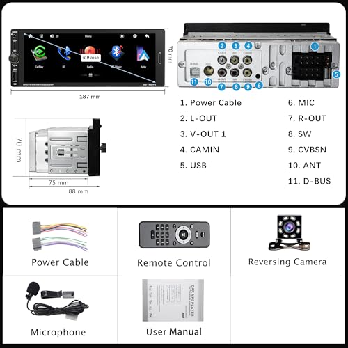 - 【ستيريو سيارة دين فردي بشاشة لمس 6.9 انش مع كاميرا احتياطية】 راديو السيارة بشاشة لمس عالية الدقة 6.9 انش بدقة عالية 1248 × 480 يمنحك تجربة بصرية ولمسية رائعة. مزود بمدخل USB/نوع C/AUX، ميكروفون مدمج، يأتي مع ميكروفون خارجي. المدخلات المختلفة تلبي احتياجاتك المختلفة. يتضمن جهاز تحكم عن بعد وتحكم في عجلة القيادة، مما يجعل من السهل التحكم في الراديو. مع كاميرا احتياطية، مما يضمن لك الوقوف بدقة وتجنب الاصطدامات عند المناورة في المساحات الضيقة، مما يجعل سلامة ركن سيارتك ووقوف السيارات أسهل