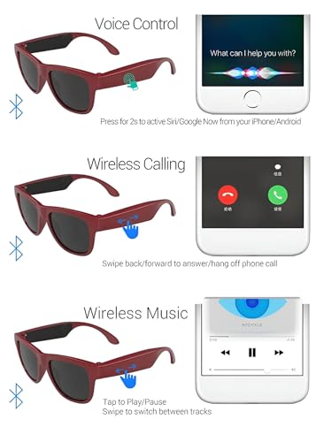 Generic - ظلال صوت لاسلكية - نظارات بلوتوث مع سماعات اذن مدمجة، ميكروفون مجال واضح، تحكم سريع الاستجابة للمس ويعمل بالصوت، صوت ستيريو، حماية 100% من اشعة الشمس فوق البنفسجية 400 للارتداء اليومي.