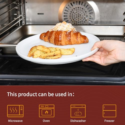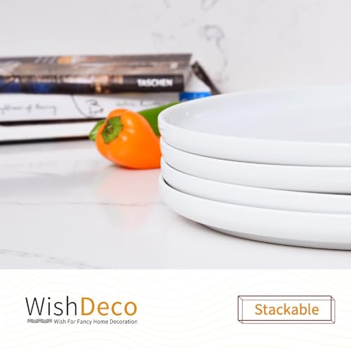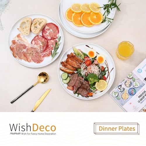WishDeco - طقم اطباق سيراميك من ويش ديكو مكون 4 قطع، دائرية بيضاء 25 سم، عشاء بورسلين امنة للاستخدام في الميكروويف وغسالة الصحون