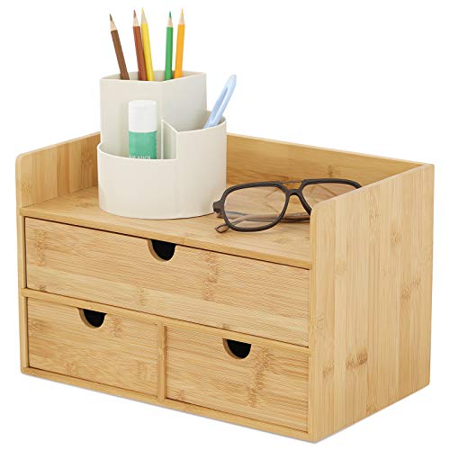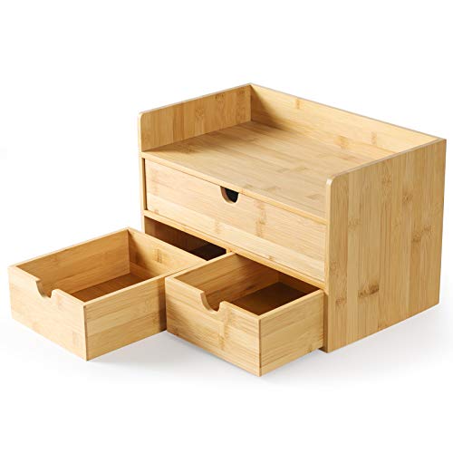 Wisuce - رف كتب لسطح المكتب من البامبو، منظم تخزين مكتبي، رف عرض مع درجين للمكتب والمطبخ، خيزران، مطلي