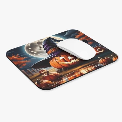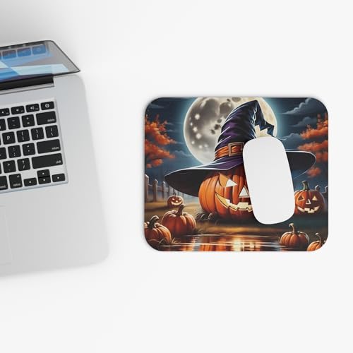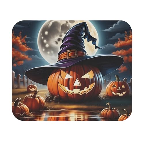 Generic - قاعدة ماوس بطابع الهالوين وقرع الساحرة وتصميم فانوس جاك المخيف مع قمر مكتمل وقاعدة مطاطية غير قابلة للانزلاق