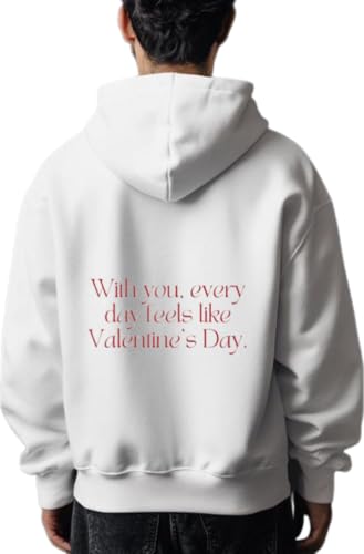 Generic - سترة بغطاء للرأس بعبارة With you every day feel like Valentine's Day VaIentine coupIe باللون الأبيض