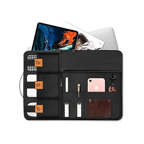 - سعة كبيرة: هذه حافظة لاب توب أنيقة بتصميم فريد لمنح جهازك مظهرًا جيدًا. إلى جانب الجيب الرئيسي لجهاز اللاب توب الخاص بك، يوجد جيبان بسحاب لتخزين محول الطاقة والكابلات والماوس وغيرها من الملحقات في موضعها الصحيح.