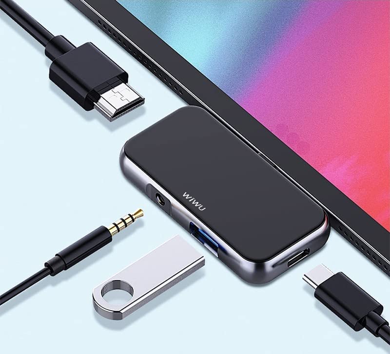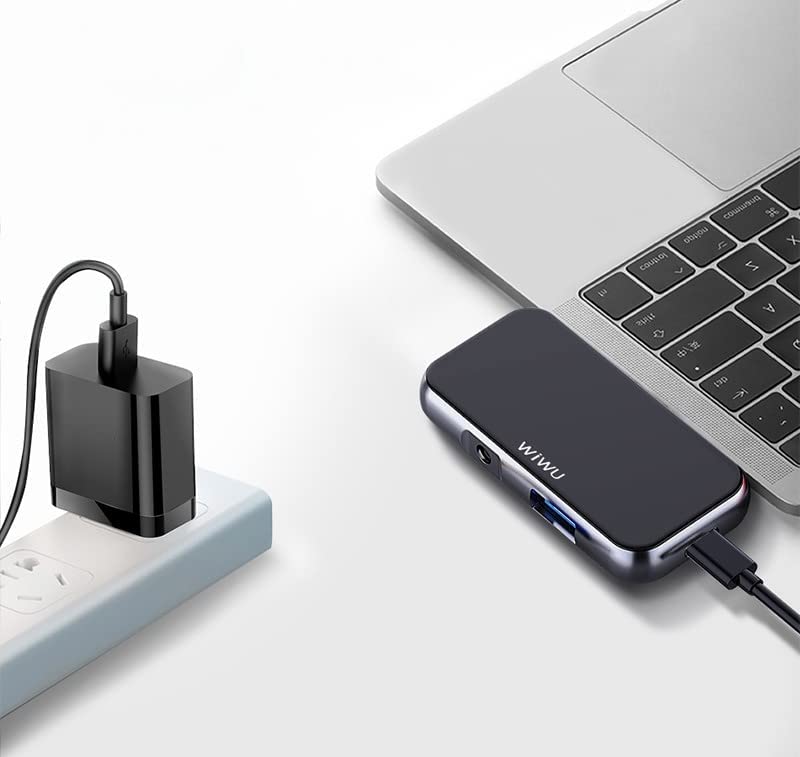 WiWU - موزع الفا T5 برو 4 في 1بمنفذ USB-C من ويفو، رمادي