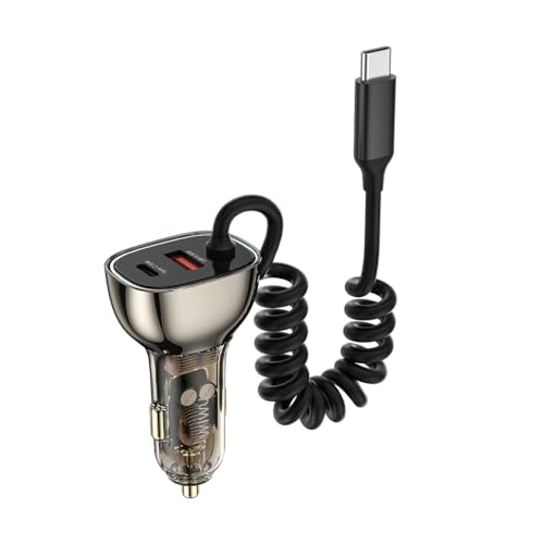 WiWU - شاحن سيارة جيك 90 وات مع منافذ USB نوع A وUSB نوع C مزدوجة من WIWU، أسود شفاف، تصميم كابل ملفوف، شحن سريع متوافق مع أجهزة متعددة