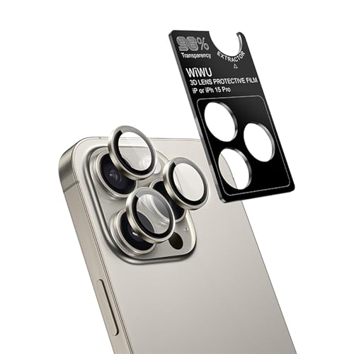 WiWU - واقي عدسة الكاميرا مقاوم للخدش وثنائي اللون بتقنية الترسيب الفيزيائي للبخار من زجاج الياقوت لموبايل آيفون 15 برو ماكس LG-003 من دبليو اي دبليو يو، تيتانيوم طبيعي