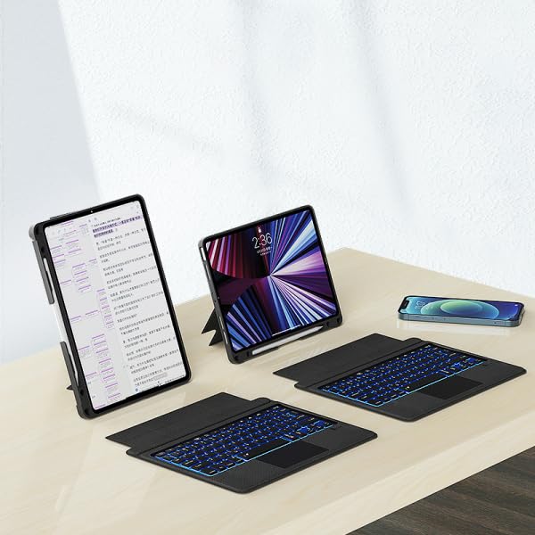- حماية فعالة: باستخدام حافظة واقية ناعمة من السيليكون والبولي يوريثين الحراري تحمي جهاز ايباد الخاص بك من الخدش أو الصدمات أو السقوط أو الغبار. يوفر حماية 360 درجة. لن تحجب حافظة كيبورد ايباد مفاتيح ومكبرات الصوت الخاصة بالايباد، ويمكنها الوصول بسهولة إلى جميع المنافذ مثل زر الصوت وزر الطاقة والكاميرا ومكبر الصوت والميكروفون وما إلى ذلك.