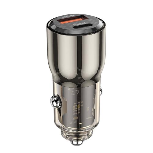 WiWU - شاحن سيارة سريع WI-QC012 95 وات من ويوو PD+QC كيرست جيك USB + نوع سي، أسود شفاف