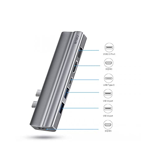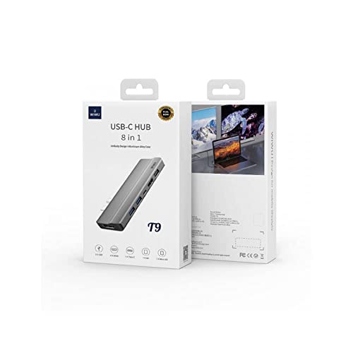 WiWU - موزع T9 8 في 1 بهيكل من خليط الألومنيوم من ويفو - رمادي