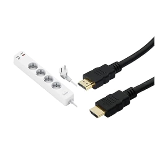 WiWU - مجموعة أساسية للتلفزيون (شريط طاقة ذكي WIWU PD20W U01EU مع 4 مخارج و3 منافذ USB، قابس أوروبي - أبيض + فيديو رقمي عالي السرعة kx 2509 مع كابل صوت HDMI ودقة 4k، بطول 10 متر، لون أسود، ايثرنت)