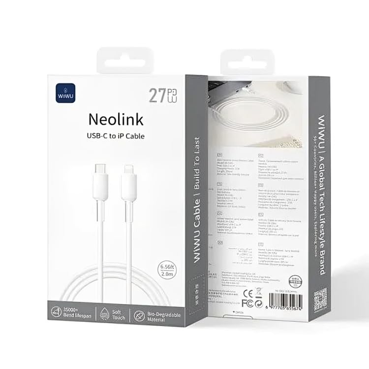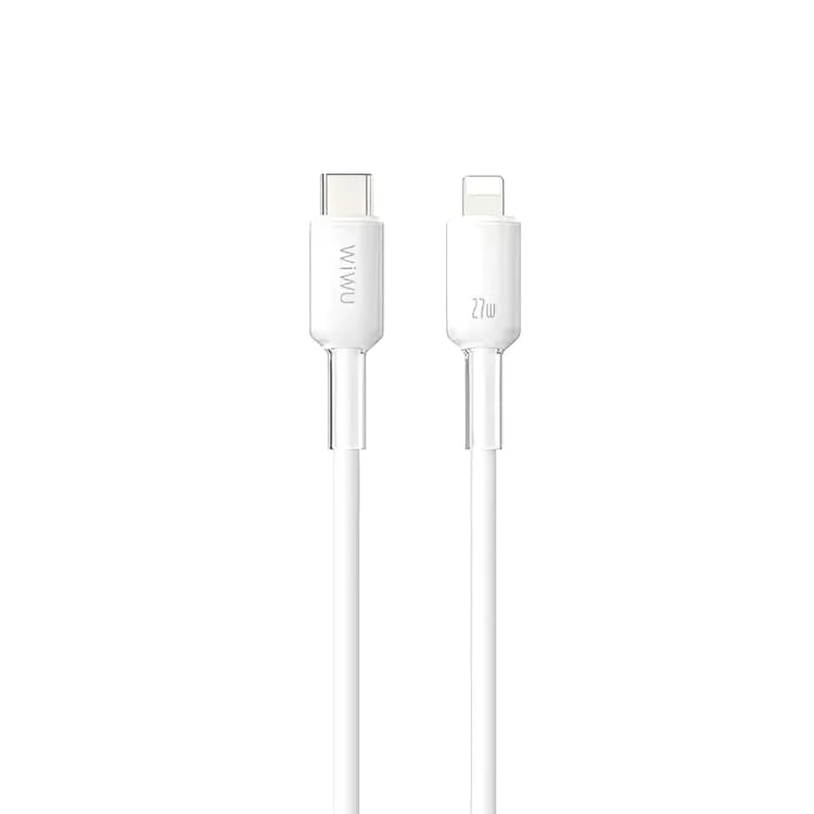 WiWU - دبليو اي دبليو يو كابل Wi‑C062 USB‑C الى لايتنينج - 2 متر شحن سريع بي دي 27 واط و480 ميجابت لكل ثانية، سيليكون مرن - ابيض | ضمان 12 شهر