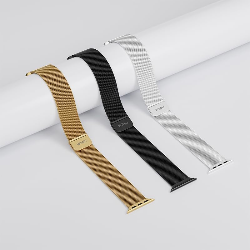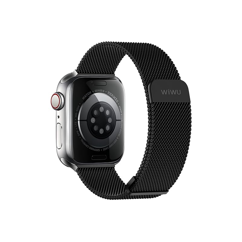 WiWU - سوار ساعة مغناطيسي بتصميم ميلاني شبكي متوافق مع سوار ساعة مقاس 42-44-45-49 ملم، مادة مضفرة من فولاذ مقاوم للصدأ مقاوم للعرق والماء، لون أسود، موديل Wi-WB005 من دبليو اي دبليو يو
