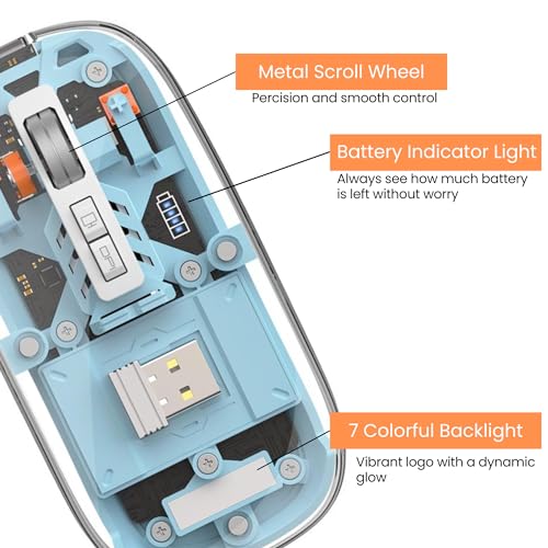 WiWU - ماوس لاسلكي شفاف كريستالي مغناطيسي، بثلاثة أوضاع (بلوتوث مزدوج +2.4 جيجا) قابل للاتصال من دبليو اي دبليو يو، WM105
