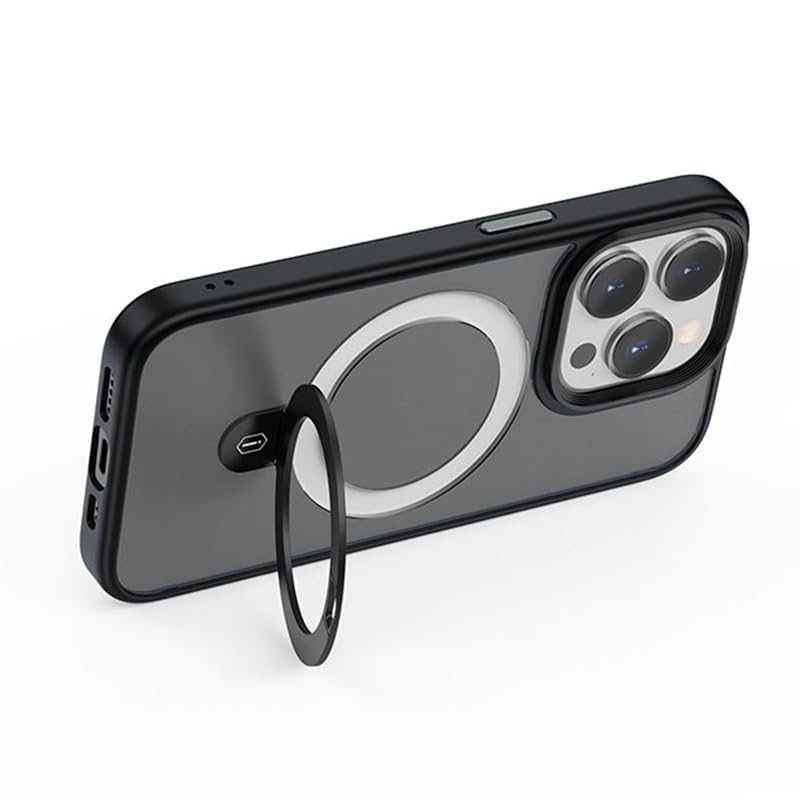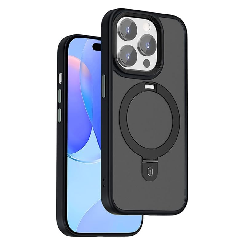 WiWU - جراب حماية مغناطيسي أنيق مع حامل من خليط معدني لموبايل آيفون 15 برو (6.1 بوصة) من ويوو - لون أسود، موديل ZMM-010