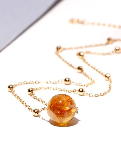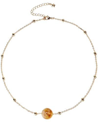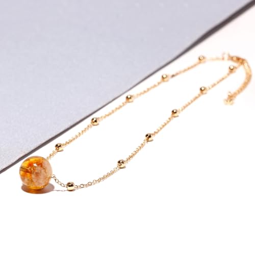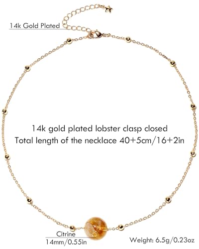 Wizock - عقد بقلادة كريستال روحية دائرية بسيطة 14 ملم للنساء من ويزوك، عقد عصري مطلي بالذهب قابل للتعديل 16+2 انش (سيترين)