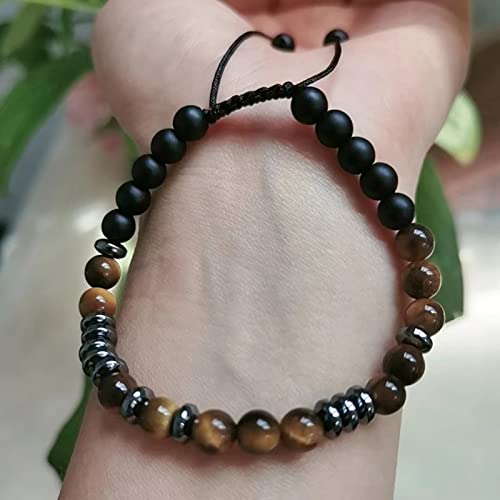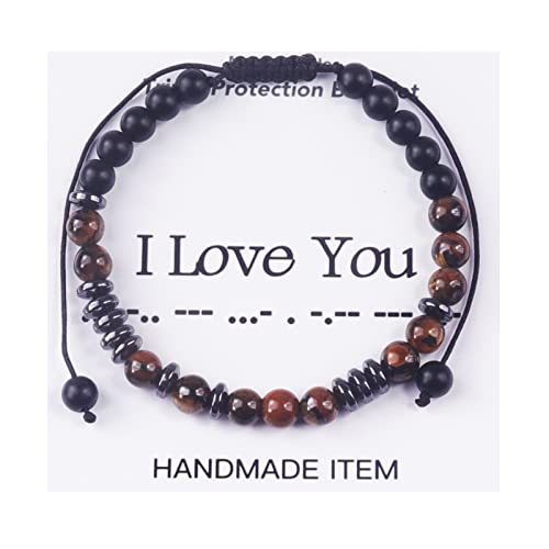 WKJHVIY - اساور للازواج بتصميم شفرة مورس من دبليو كيه جيه اتش في واي مقاس 8 ملم هيماتيت للبالغين الجنسين