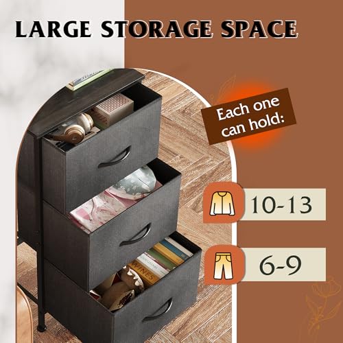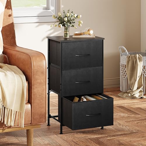 WLIVE - دولاب بـ 3 أدراج من دبليو لايف، طاولة جانبية قماش، وحدة منظمة، دولاب تخزين لغرفة النوم والممر والمدخل والدولاب، إطار صلب قوي، سطح خشب، مقبض سهل السحب، رصاصي، أسود
