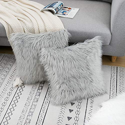 WLNUI - اغطية وسادات منفوشة رمادي فاتح مزخرفة جديدة فاخرة من ويلني سلسلة ميرينو نمط فو الفراء غطاء وسادة غطاء وسادة ضبابي مربع 18x18 بوصة، قطعتين