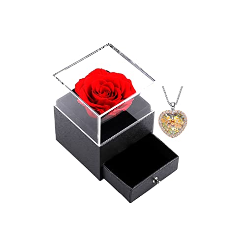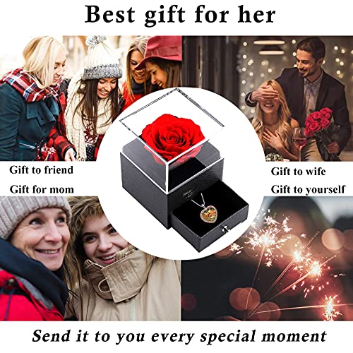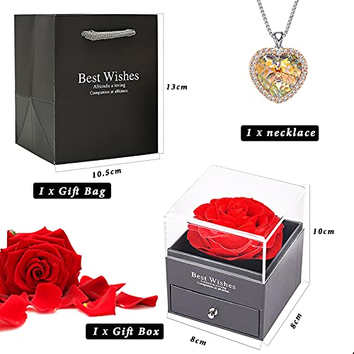 WNING - قلادة من الفضة روز اتيرنيل بتصميم جناح ملاك مطلية جولد وينينج للنساء مجوهرات هدايا للامهات - النساء - الاخت مع صندوق ورد حقيقي محفوظ نحاس