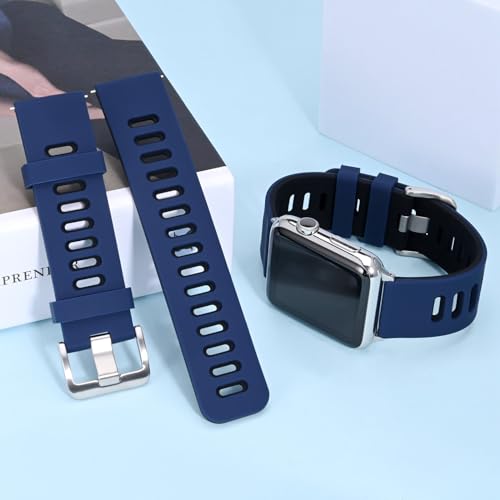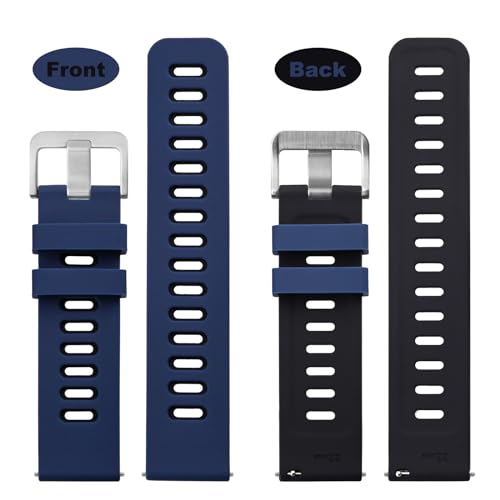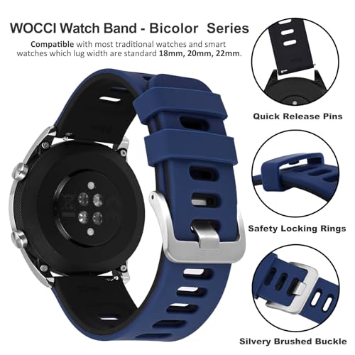 WOCCI - وتشي سوار ساعة ثنائي اللون 22 ملم، مطاط سيليكون، سوار بديل سريع الفك للرجال والنساء، مشبك فضي من الستانلس ستيل (ازرق-اسود)