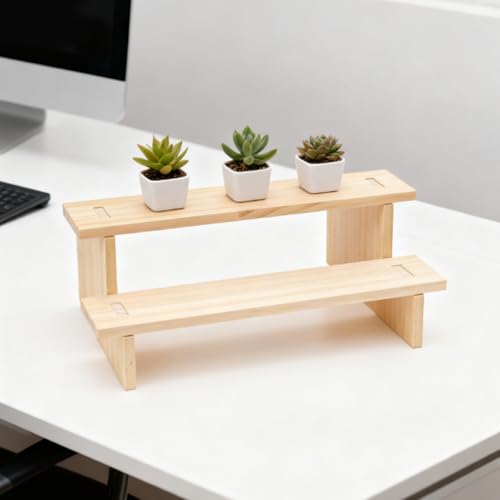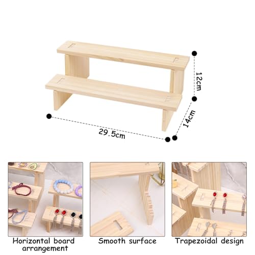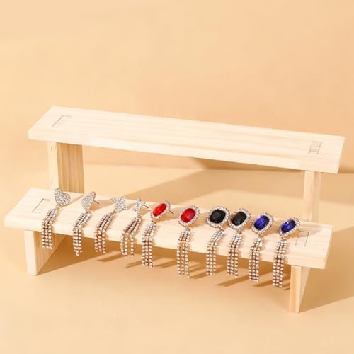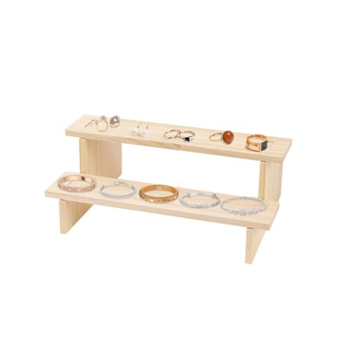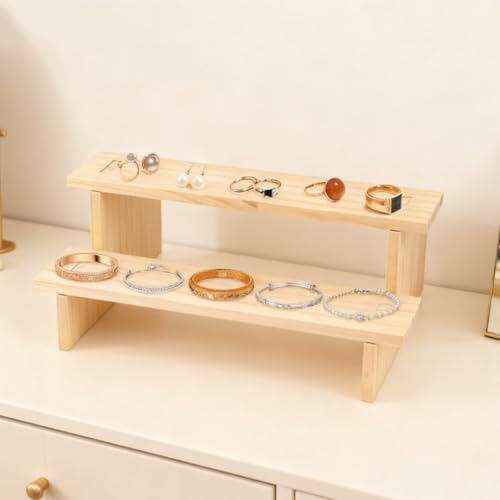 WODJR - حامل خشبي لعرض المجوهرات من دبليو دي جيه ار، حامل مجوهرات خشبي بطبقتين للخواتم والاقراط والقلائد والاساور، رف عرض خشبي للكب كيك والتماثيل والعطور والنباتات وعرض الحلوى