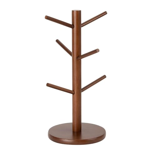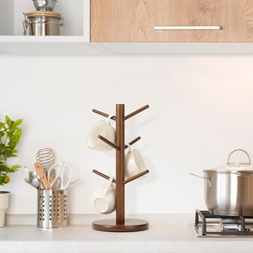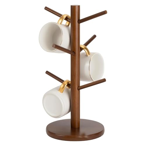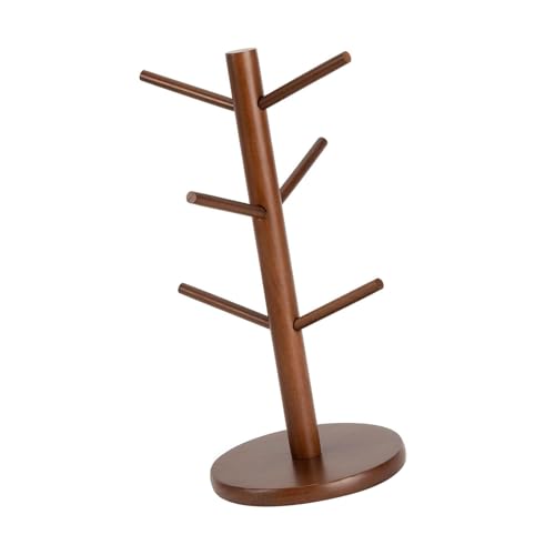 WOHPNLE - حامل مجات القهوة على شكل شجرة بـ 6 خطافات خشبية للتخزين والتنظيم المنزلي من ووبنل (لون بني)