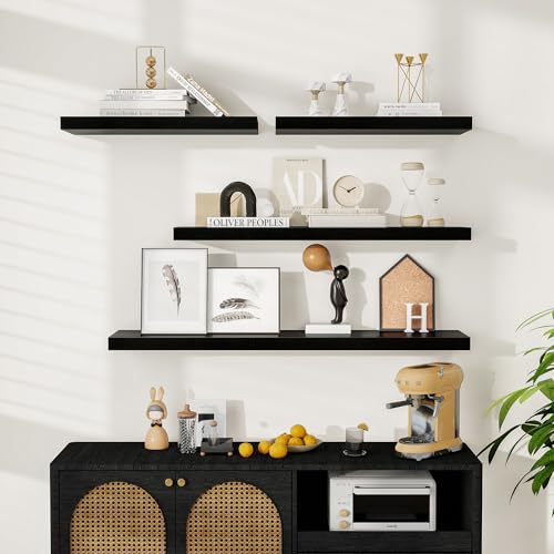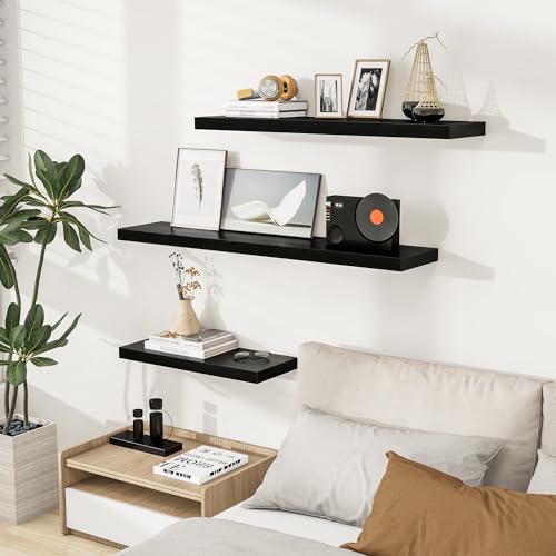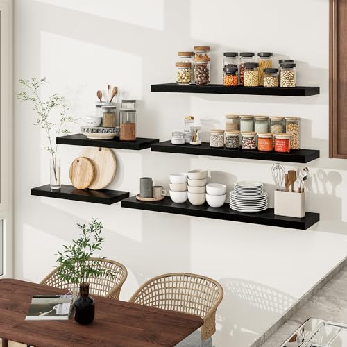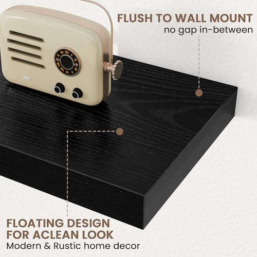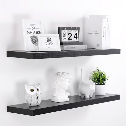 Woiusfor - أرفف عائمة بطول 7 سم، رف حائط عميق 23 سم، رف مدفأة، أرفف خشبية بنمط ريفي لديكور الحائط والحمام والمطبخ والمكتب من ويوسفور(أسود، مجموعة من 2 قطعة)