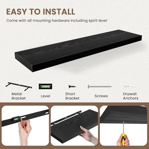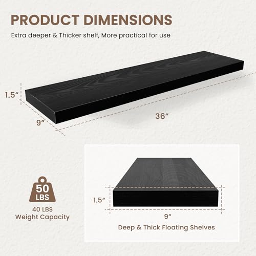 - 【رف معلق بعمق 22.8 سم】يتميّز هذا الرف الجداري المعلق بعمق إضافي 22.8 سم وسُمك 3.8 سم، مما يجعله أعمق وأكثر متانة من الرفوف العائمة التقليدية الضيقة. يمكنك وضع الصور، وأجهزة تشغيل أقراص DVD، ومقاطع الفيديو، والكتب، والألعاب، وبعض المقتنيات الصغيرة الأخرى على هذا الرف الخشبي الجميل للعرض.