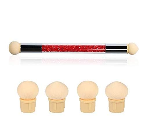 WOIWO - قلم فرشاة اسفنجية مزدوج الاطراف لفن طلاء الاظافر وطلاء الجل بالاشعة فوق البنفسجية وتاثير التفتح مع 4 رؤوس بديلة من وويوو (لون احمر)