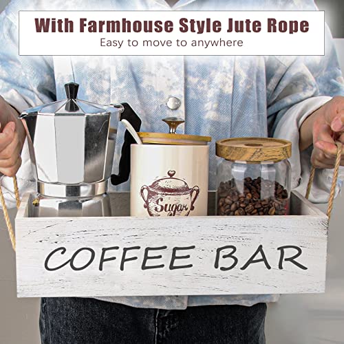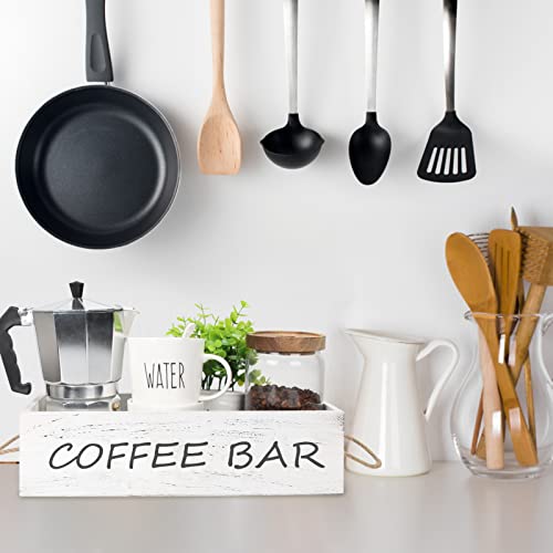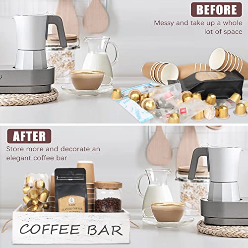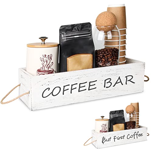 Wojoiul - منظم طاولة قهوة خشبي من وجهين للكتابة، أكسسوارات بار القهوة، سلة تخزين وحامل اكواب القهوة مع مقبض للمنزل والمزرعة والمطبخ لمحبي القهوة (أبيض) من وجويول