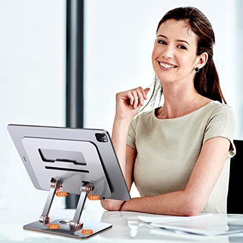 - √【تصميم دوار 360 درجة】: مع عمود دوار 360 درجة متصل بالقاعدة، يتيح لك حامل اللاب توب الدوار الخاص بنا عرض شاشة الكمبيوتر الخاص بك بسهولة للآخرين مما يجعله أداة مثالية للعمل.