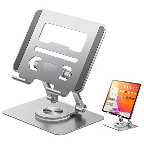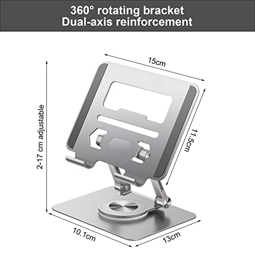 WOKICOR - حامل لاب توب دوار من خليط معدني الالومنيوم ووكيكور 360 درجة ارتفاع قابل للتعديل للطي بفتحة حرارة لاجهزة اللاب حتى 17 بوصة فضي .